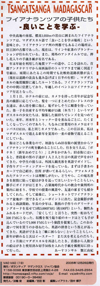 良いことを学ぶ-フィアナランツアの子供たち(VAO VAO, 19号,2005年12月)